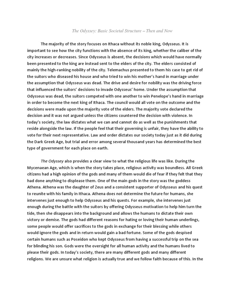 Paris, for instance, does not like war, essays on the odyssey, and accordingly begets the ridicule of not only his family, but also his lover. On the contrary, Achilles wins eternal glory as he openly turns down the choice of a long, comfortable, and sedentary life at home. The text appears to encourage this particular aspect of judging character and extends it even to the gods. The classic holds warlike deities like Athena in high esteem and respect, whereas essays on the odyssey makes fun of gods that avoid or abhor violence, utilizing Aphrodite's and Artemis' timidity to….